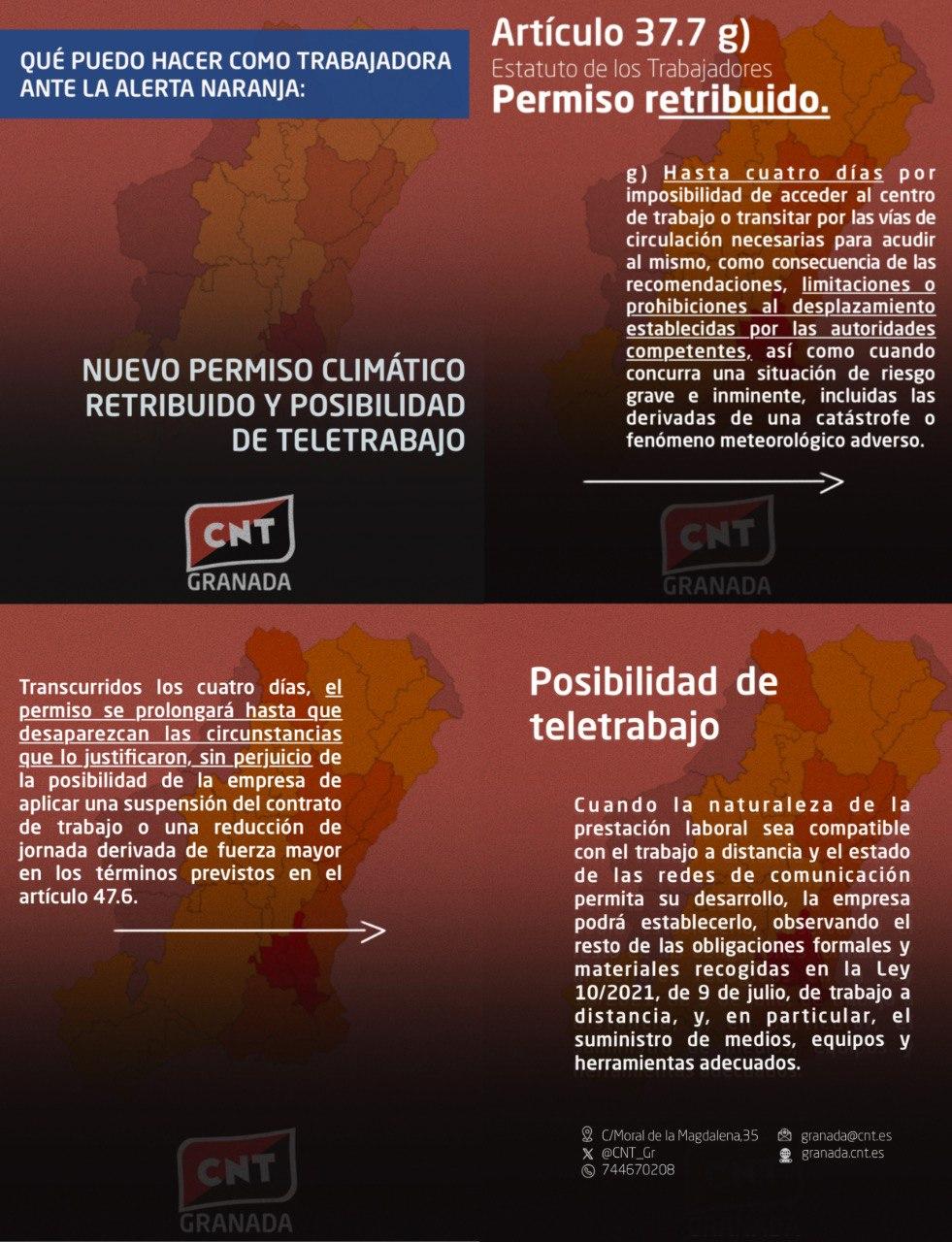 “Debido a la alerta meteorológica y al estado de las carreteras/transporte público, no es seguro desplazarme al trabajo. Quedo pendiente de indicaciones.”